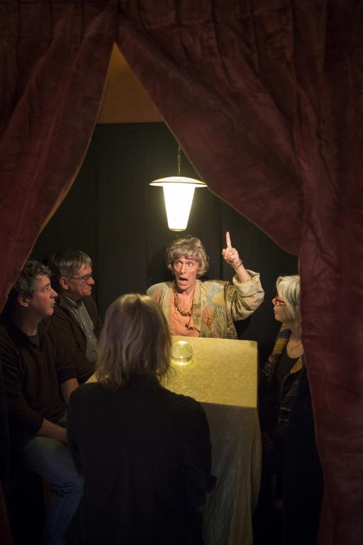 “Marthilda, Wahrsagerin” ist eine Art Theatervorstellung in einem kleinen Zelt für bis zu 9 Personen. Eine Vorstellung dauert etwa 5 Minuten.